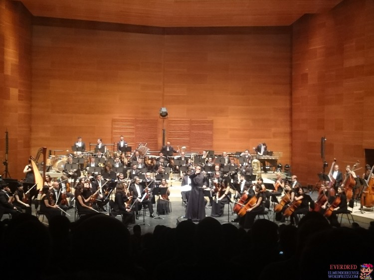 Inocente de mí, para nada esperaba ver la maravilla que al final vi. Tanto la orquesta como el director estuvieron sublimes, lo bordaron, dieron sopas con ondas a los otros tres musicales que había visto hasta entonces. Esto sí era una orquesta que disfrutaba de lo que tocaba, que no digo que a los anteriores no les gustase, me refiero a que estos se les veía más animados, leñe, que lo disfrutaron más. Si la orquesta estuvo mucho mejor que las de los musicales de The Legend of Zelda y de Final Fantasy, el director ya estaba a otro nivel, no se le puede ni se le debe comparar con los 3 anteriores que había visto. En los 3 musicales anteriores que vi, los directores eran bastante sosos, por lo general movían el brazo y poco más, como si no lo viviesen, en cambio en el musical de La Música de las Galaxias sucedía todo lo contrario. Tal y como he comentado antes, la orquesta lo sentía y lo vivía y eso mismo sucedía con el director, sentía y vivía cada tema musical, se movía más que ningún otro director que he visto, lo disfrutaba y gozaba, fue tremendo.