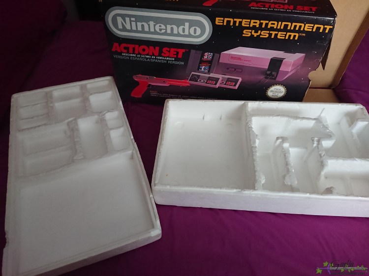 – Caja Nintendo NES Action Set: Llevaba años con una NES con Zapper sin caja, de hecho, la tenía guardada en una caja de Ramen. Algo triste sí, pero se debe a que la conseguí en una Japan Weekend en una oferta irrechazable. Me estaba costando bastante conseguir una caja del NES Action Set. Durante noviembre en un grupo Retro en el que estoy, uno de los usuarios puso en venta esta caja, con el poliespán interior en muy buen estado también, justamente todo lo que a mi me faltaba. El precio no fue tan barato como el que servidor hubiera deseado, pero no podía dejarla escapar, de ninguna manera.