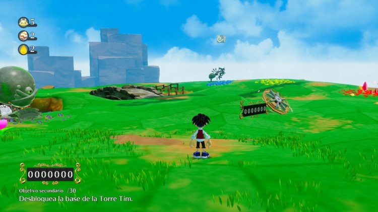 Respecto a los visual, el juego cuenta también con infinidad de problemas. Mucha gente lo ha comparado con un título de Nintendo 64 y, a pesar de ser una comparación un tanto exagerada, no es descabellada. Visualmente Balan Wonderworld es pobre, realmente pobre. En la imagen superior lo podéis apreciar bien. Tiene modelos muy básicos, con texturas poco detalladas y de baja resolución. Además el escenario está compuesto de islas flotantes, para no cargar un enorme mapa y además parte del escenario se va construyendo o deconstruyendo a medida que caminas. Unas triquiñuelas que si me lo dices a finales de los años 90 te lo puedo llegar a entender, pero en el año 2021 en absoluto te lo acepto. La potencia de las consolas da para mapeados enormes, en constante movimiento y con modelos detallados, sólo hay que ver a Super Mario Odyssey.