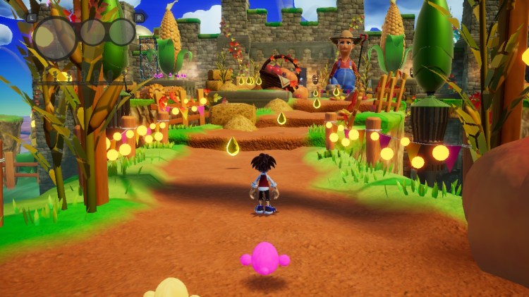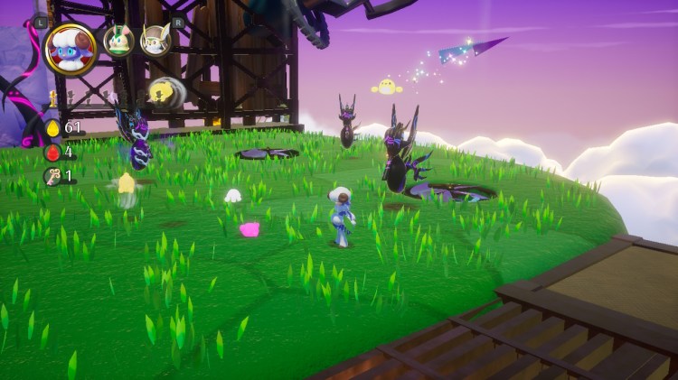 Si visualmente no es brillante, en movimiento parece incluso peor. Las animaciones del personaje son realmente simples y las de los enemigos tres cuartos de lo mismo. La fase cuenta con varios NPC para darle más vidilla, pero no creas que puedes interactuar con ellos ya que desaparecen cuando te acercas, algo que carece de sentido. Con uno de los disfraces puedes romper cajas, las cuales desaparecen sin más, en vez de hacerse añicos y luego si eso desaparecer. Sí, así es, faltan animaciones de bastantes objetos en el escenario. Parece un título indie lo mires por donde lo mires.