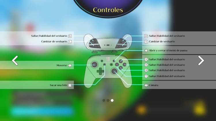 En los tráiler pintaba sencillo, tremendamente sencillo, pero una vez te pones a sus mandos lo es mucho más. El personaje sólo salta. Sí, sólo salta. Incluso Super Mario en Super Mario Bros 3, en el año 88 ya tenía dos movimientos, el salto y el golpeo con la cola de Mapache o lanzar bolas con la Flor de Fuego, en caso de tenerla. Y en los títulos más modernos Mario puede golpear además de saltar. Pero la gente detrás de Balan Wonderland ha tenido las santas narices de hacer un juego en el siglo 21 con un único movimiento, obviando el caminar o correr claro. Los botones ZL, ZR, A, B, Y, X hacen exactamente lo mismo, saltar. Para muestra una captura.