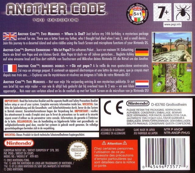 Ese juego sería Trace Memory o, como conocemos aquí en Europa, Another Code: Two Memories. Se trata de una aventura gráfica con una misteriosa historia llena de intriga y un diseño artístico realmente atractivo. Además, aprovechaba las capacidades de Nintendo DS de una forma muy completa haciendo uso tanto de la pantalla táctil como del micrófono para la resolución de puzles. Durante los primeros compases del desarrollo, Another Code fue pensado como una aventura en tercera persona, pero más tarde cambiaron esa perspectiva ya que no resultaría cómoda para los jugadores.