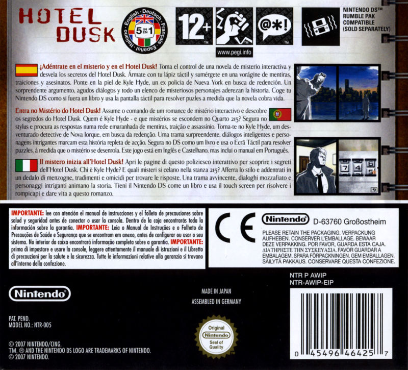 En Hotel Dusk interpretaremos a Kyle Hyde, un expolicía neoyorquino, que intentará averiguar los secretos que esconde el misterioso Hotel Dusk, ambientado en los años 70. El desarrollo del juego duró un año y estuvieron involucrados 20 trabajadores, un detalle que nos muestra el esfuerzo y las ganas que pusieron en él, era un proyecto que les ilusionaba mucho.