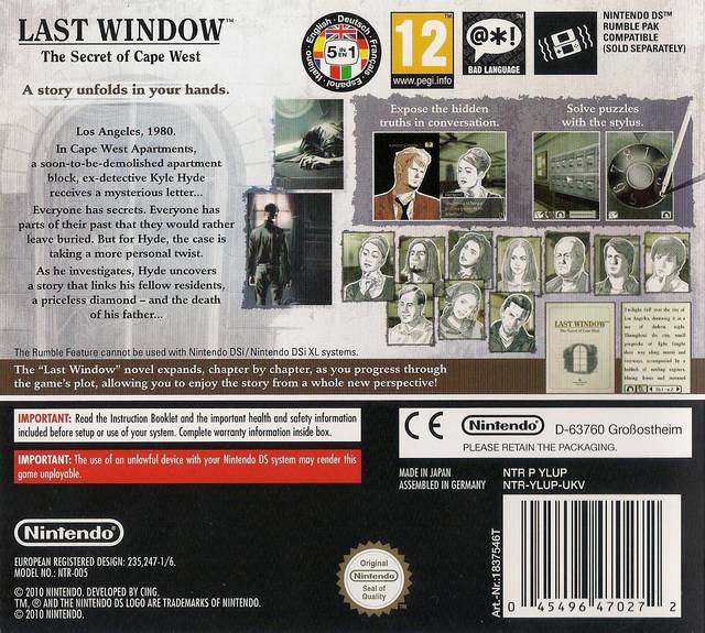 Igualmente Nintendo Europa quiere que Last Window salga. Y lo distribuye. En el viejo continente consigue vender un total de 85 mil copias. Lo que hace que el juego venda, más o menos, 175 mil copias entre Europa y Japón. Una vez más unas ventas muy pobres para la calidad de unos títulos que, sin duda, merecen mucho más.