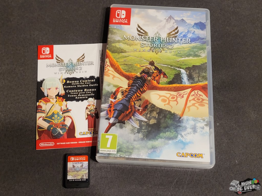 – Monster Hunter Stories 2 Wings of Ruin: Una caza que no esperaba. Pero una cosa lleva a la otra y al final un vale en una tienda me llevó a comprar este juego seminuevo tirado de precio. En fin, los que me conocéis ya sabéis lo que me decepcionó la primera entrega para Nintendo 3DS, pero me han contado por activa y por pasiva que este juego es mejor, que mejora todo en lo que fallaba el primero. Veremos.
