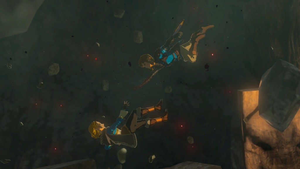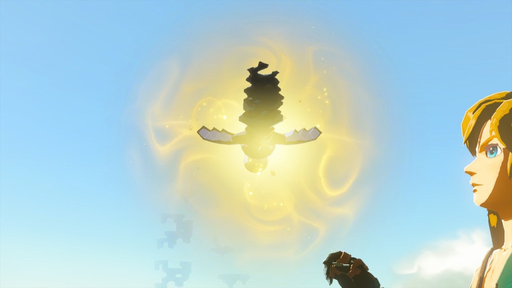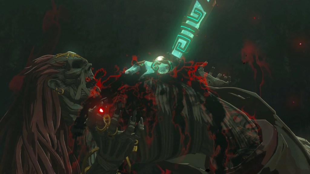 La criatura comenzó a hablar y conocía nuestros nombres. Mencionó también a un tal Rauru. De pronto gran cantidad de aura maligna emanó de su cuerpo y el Castillo de Hyrule se elevó a los cielos.