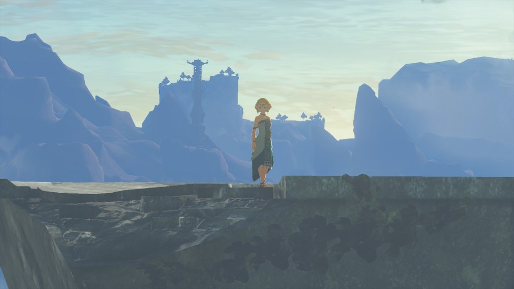 Al llegar a lo alto me encontré con Hozlar, el comandante de esta avanzadilla. Pero, de forma totalmente inesperada la princesa Zelda apareció sobre una de las murallas. Me miró fijamente, y ascendió a los cielos en forma de motas luminosas.
