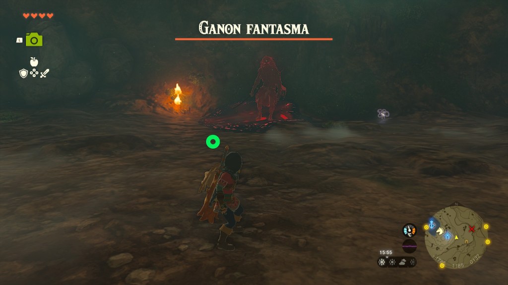 Al lado de donde se encontraba Obab había una entrada a una cueva y me adentré en ella. Me volví a encontrar con las odiosas manos. Hui de ellas hasta llegar a un santuario, pero una vez completado tuve que desandar el camino y volver a enfrentarme a las malditas manos. Aproveché la ventaja que me daban las alturas y les disparé flechas bomba desde una distancia que no me podían alcanzar. Derrotarlas fue un gran error ya que entonces apareció Ganon Fantasma. Quien atacaba con gran fiereza y se teletransportaba. Mis ataques no parecían hacerle daño alguno. Además, empezó a llenar toda la sala de aura maligna así que tuve que huir rápidamente de allí.