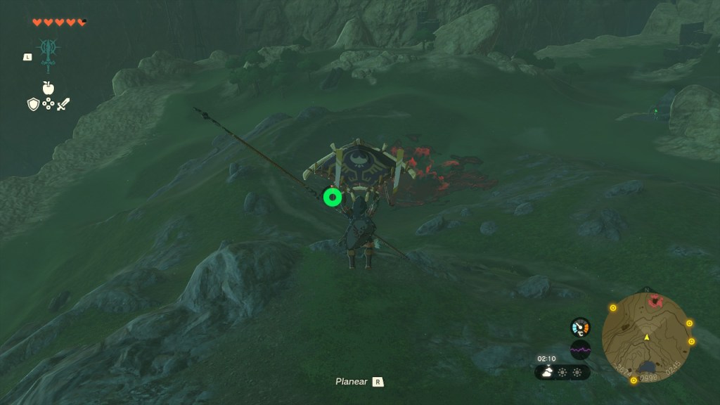 Derroté a un nuevo Hinox y tomé una de las rocas que caían de los cielos para alcanzar una Isla Celeste. En ella encontré un Generador de Artilugios portátiles. El cual ofrecía algún objeto diferente al que había visto anteriormente.