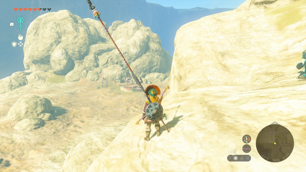 Mientras exploraba de forma más exhaustiva las montañas que ascendí con Tureli en dirección al Templo del Viento, vi a lo lejos un nuevo geoglifo y la atalaya de la nueva región. Pero decidí que aun no era el momento de partir hacia allí.