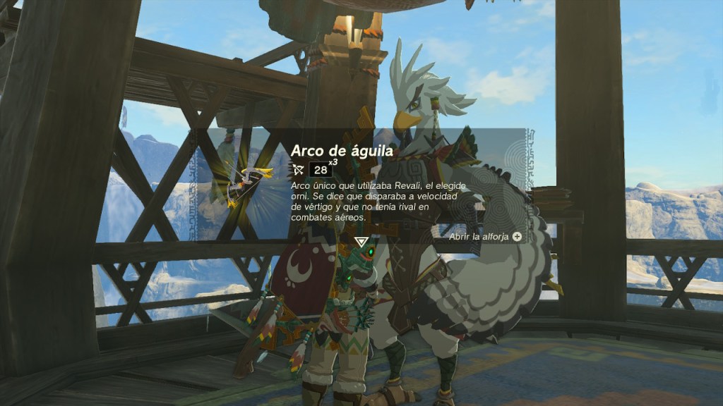 Partí entonces al poblado Orni a entregar otras misiones. Ahora que se habían deshecho de la nieve pude conseguir los pescados para la receta de Genali. Y también hice unos trueques con Vedli. Le comenté a Tureli sobre el tesoro que había encontrado en las Termas y Teba me quiso ofrecer un arco, pero para su fabricación, además de algunos materiales, también me pidió un arco de Golondrina. No lo tenía en mis manos así que me pidió que me dirigiese a la zona de entrenamiento. Allí me encontré con Tyto quien me propuso un desafío, que completé fácilmente. Entonces me ofreció el arco de golondrina que estaba a su lado. Se lo llevé a Teba y me fabricó un arco de águila.