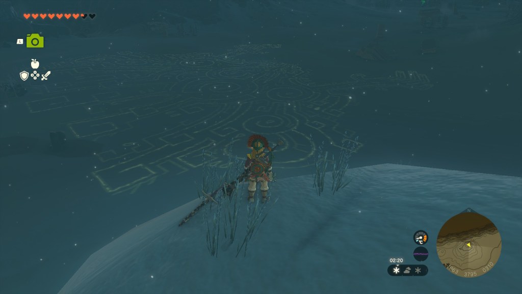 En primer lugar, rodeé el gran laberinto y obtuve tesoros derritiendo bloques de hielo. Entonces partí hacia el santuario. Tuve que utilizar un escudo con cohete para poder acceder a él. No fue muy complicado de solventar. Una vez hecho fui a una estatua de la diosa a incrementar mis corazones antes de afrontar el laberinto.