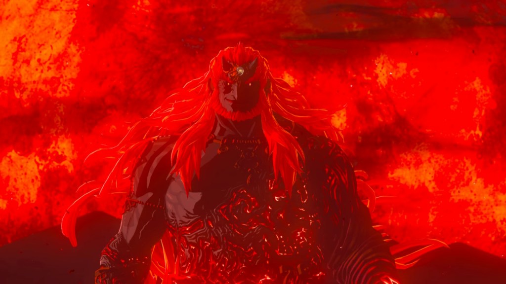 Como la intriga me podía fui directamente al geoglifo gigante que estaba en una llanura en esta nueva región. Se trataba de un nuevo recuerdo de la princesa Zelda. En él aparecía Ganondorf. El hombre Gerudo había arrebatado la lágrima de Sonnia y había acabado con ella. Ganondorf imbuyó la lágrima con su oscuro poder y la lágrima se le acopló a su frente potenciándolo hasta convertirse en el Rey Demonio. Liberó todo su poder e invocó a criaturas hostiles a lo largo y ancho del Reino. Rauru apareció en escena preocupado por Sonnia. Ganondorf le atacó y el Rey de Hyrule se protegió con una barrera mágica. En ese momento Zelda sacó la piedra sheika y teletransportó a los tres fuera del alcance del Rey Demonio. Un recuerdo que me ha dejado completamente impactado.