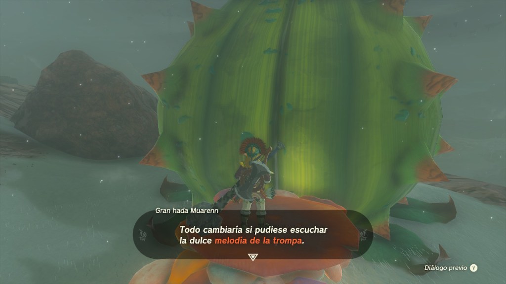 Me encontré, otra vez con Kalibat, a quien ayudé, como siempre. Un poco más al sur me encontré con la Gran hada Muarenn. Pero esta no quiso salir. Dijo que no lo haría hasta que escuchase la melodía de la trompa. No se bien a lo que se refiere, pero a duras penas logro aguantar los golpes de los enemigos negros y plateados, ojalá pronto consiga potenciar mi equipo.