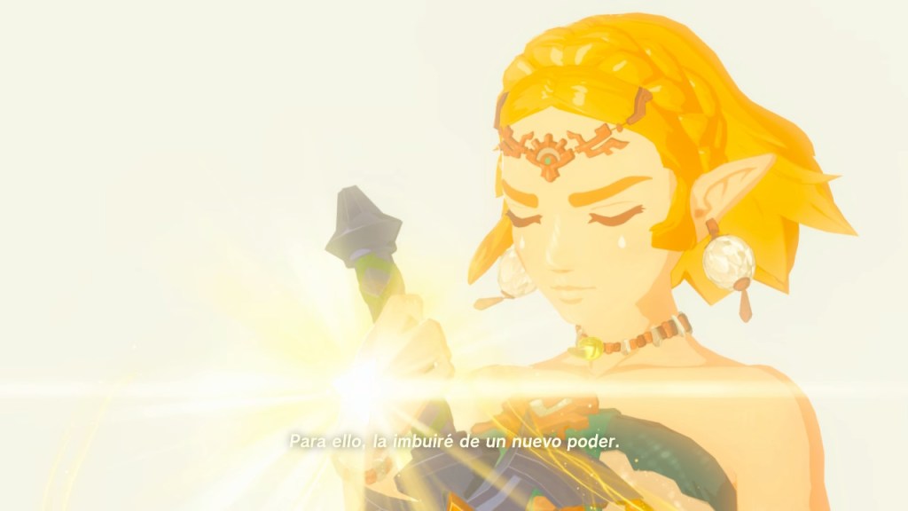 Entonces vi un recuerdo de la Princesa Zelda. Me decía que la espada era lo único que podía acabar con el Rey Demonio y que un largo letargo la repararía. Dijo que la imbuiría de un nuevo poder y que esperaba que en el futuro volviese a mi mano. No se equivocaba, al fin vuelvo a tener la Espada Maestra en mi poder.