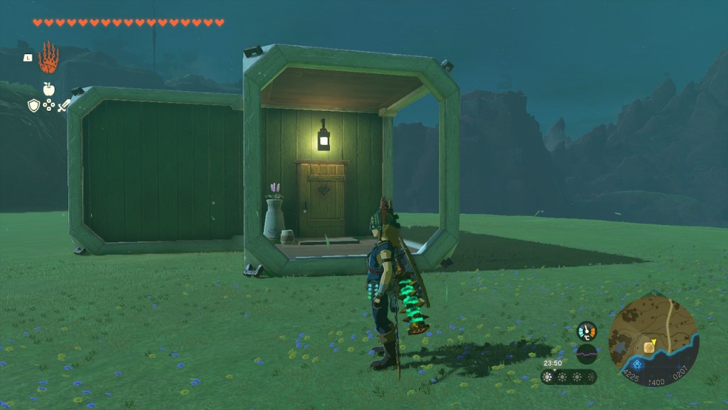 Construí mi máquina voladora y la acoplé una semilla luminosa grande. Me encontré una nueva base del clan Yiga en la que obtuve un nuevo esquema. Me crucé con algún monstruo grande y fui activando las raíces bajo los santuarios de la superficie. La más retorcida de encontrar fue la que estaba bajo la playa Espiralia. Además, ahí aguardaba la Túnica del Crepúsculo en un cofre. Encontré una nueva mina abandonada bajo Arkadia y me crucé con un nuevo Centaleón acorazado. Una vez que activé todas las raíces intercambié el zonannio que había acumulado por cristales y obtuve los suficientes como para 5 células energéticas.
