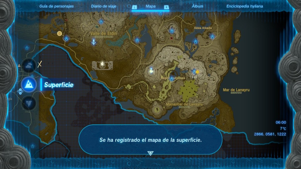 Ahora ya sabía cómo retirar el fango, así que me dirigí de nuevo a la atalaya. La limpié y la activé. Obtuve el mapa de la superficie y el del cielo. En efecto, había muchas islas celestes. Debían ser la causa del fango que asolaba la región.