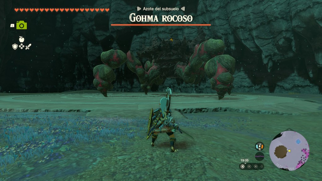 Con toda la superficie explorada era el momento de hacer lo propio con la sección del subsuelo correspondiente. Acabé con varios monstruos grandes y fui activando las raíces bajo los santuarios. Me encontré con campamentos del clan Yiga muy ingeniosamente custodiados, pero igualmente logré saquearlos y hacerme con sus esquemas. Durante la exploración me crucé con Fangorok, el jefe del Templo del Agua, no me lo puso fácil, pero logré doblegarlo. Obtuve el Escudo del viento en un cofre y activé la última raíz de la región. Era el momento de regresar a la superficie, era el momento de marchar a una nueva región.