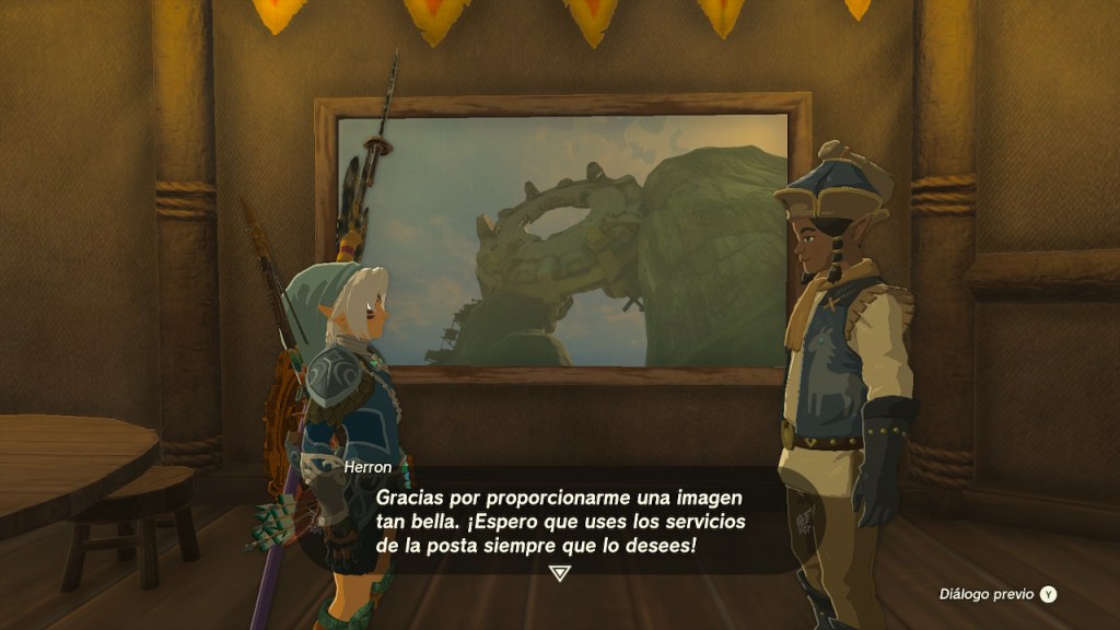 En dirección al sureste llegué a una nueva posta. Completé rápidamente el santuario cercano y fui a hablar con el dueño para obtener los puntos del gremio. Le pregunté sobre la petición fotográfica. Me pidió una foto de las ruinas anulares de Kakariko. En cuanto pase por allí tomaré la instantánea. Hablé entonces con la gente de la posta. Imiba me pidió ayuda para acabar con los enemigos que había cerca de su pozo, fue sencillo. Me encontré con Penn, de la gaceta. Me comentó que Izron había prestado unos aperos de labranza a Zelda y ésta no se los había devuelto. Le transporté río abajo al encargado de las balsas hasta el campo de flores. Ahí nos encontramos con Magda, quien tenía los aperos que la princesa había tomado prestados, se habían olvidado de devolverlos.