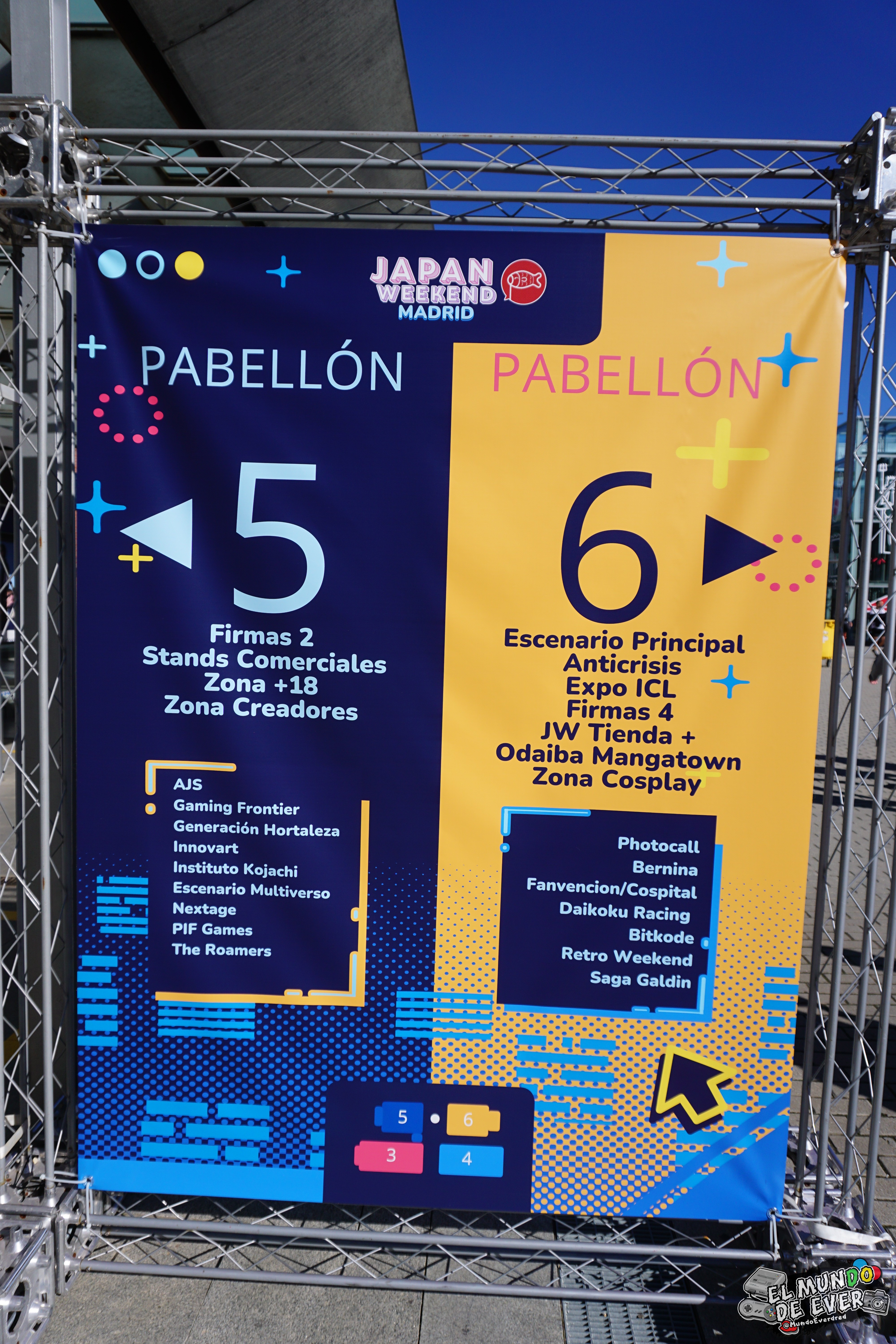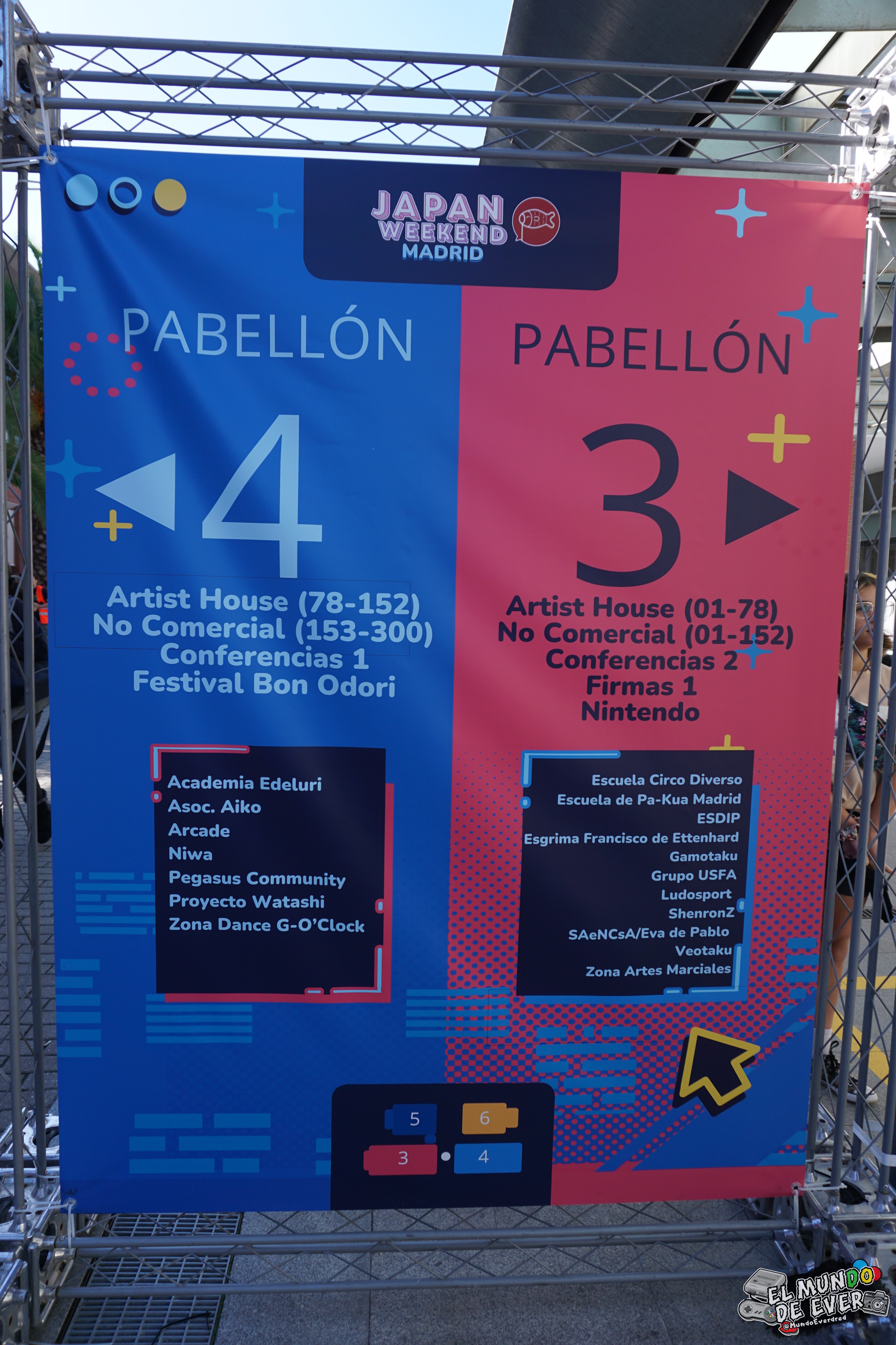 El pabellón 3 incluía la mitad del Artist House y la mitad de la Zona No Comercial, además de la zona Nintendo, conferencias y diversas actividades. El pabellón 4 contaba con la otra mitad del Artist House y la Zona No Comercial, otras conferencias y diversas asociaciones y academias. El pabellón 5 estaba dedicado en su mayoría a la Zona Comercial, pero contaba también con la Zona +18, zona de firmas y creadores y diversos stands de asociaciones de gaming. Por último, el pabellón 6 incluía el escenario principal, diversas secciones orientadas al cosplay, firmas y Retro Weekend. Y más cosas que me estaré olvidando. Había contenido para todos los gustos y a todas horas.