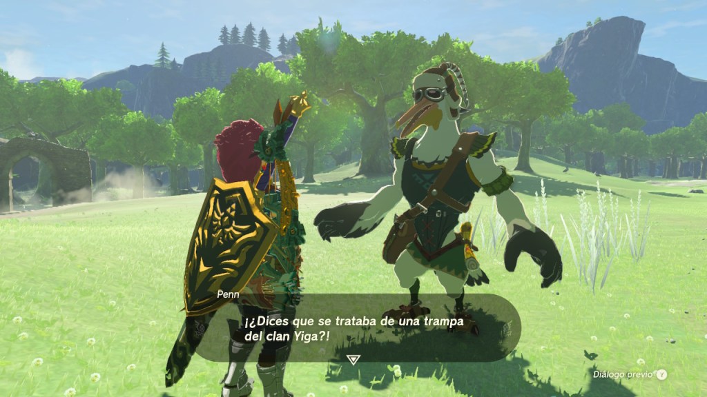 Me volví a encontrar con Penn, de la gaceta. Estaba con Nell. Este joven nos contó que escuchó a una mujer gritar que había una persona en apuros. Marché entonces hacia donde nos indicó el joven. Encontré a la mujer. La fui siguiendo mientras acababa con algunos enemigos. Acabé llegando a la Meseta de los Albores. Ahí fui emboscado por esbirros del clan Yiga, se trataba de una trampa. Otro rumor sobre la Princesa Zelda completado.