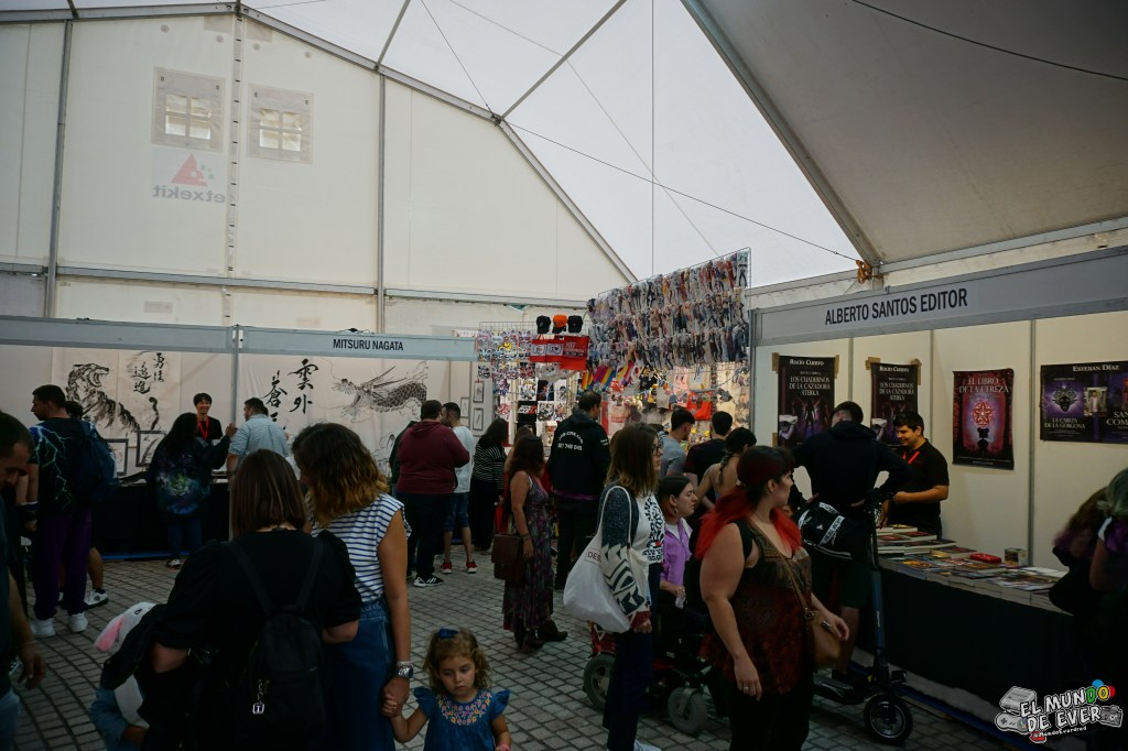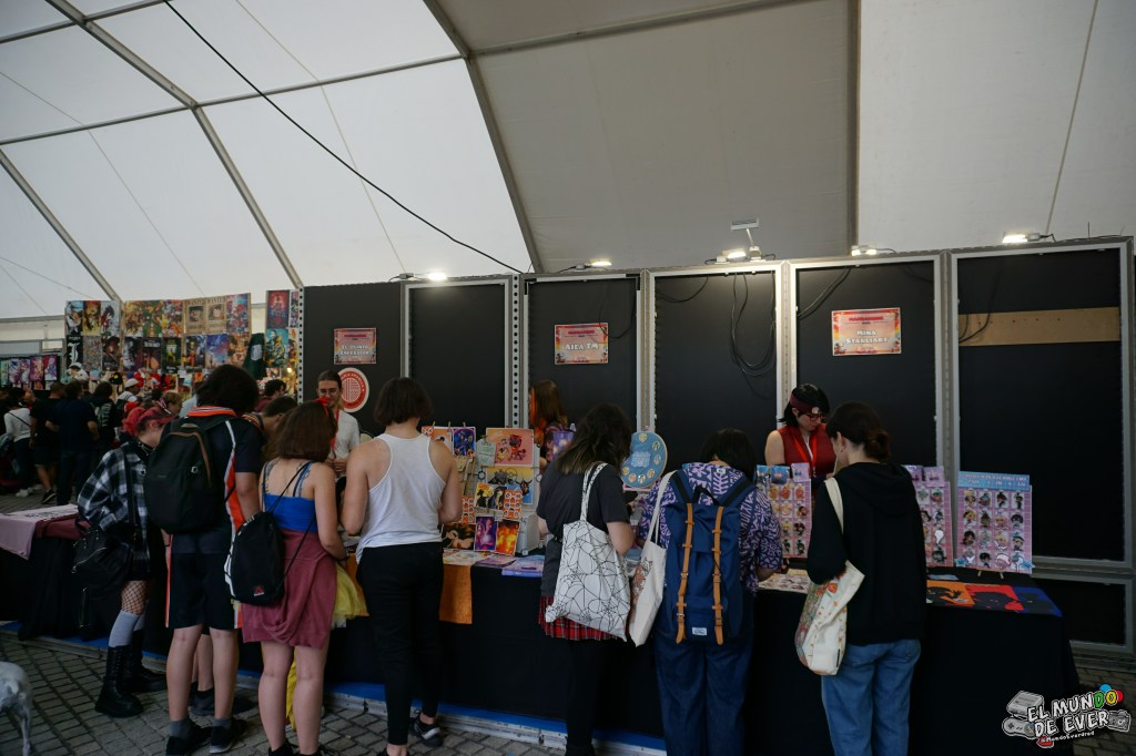 La Zona Comercial, como he comentado antes, estaba situada en una carpa frente al Centro Zelaieta. Constaba con una docena de puestos. Desde puestos de comida asiática hasta arte japonés, pasando por las clásicas tiendas de figuras, mangas o camisetas. Muy similar a años anteriores. En esta ocasión el centro del recinto sí que estaba ocupado por unas mesas donde colocaron algunos de los invitados: el youtuber El quinto emperador, la tik toker Aida.TM y la cosplayer Mina Starliart. Pudieron sacarse fotos con sus fans y comprar sus productos.