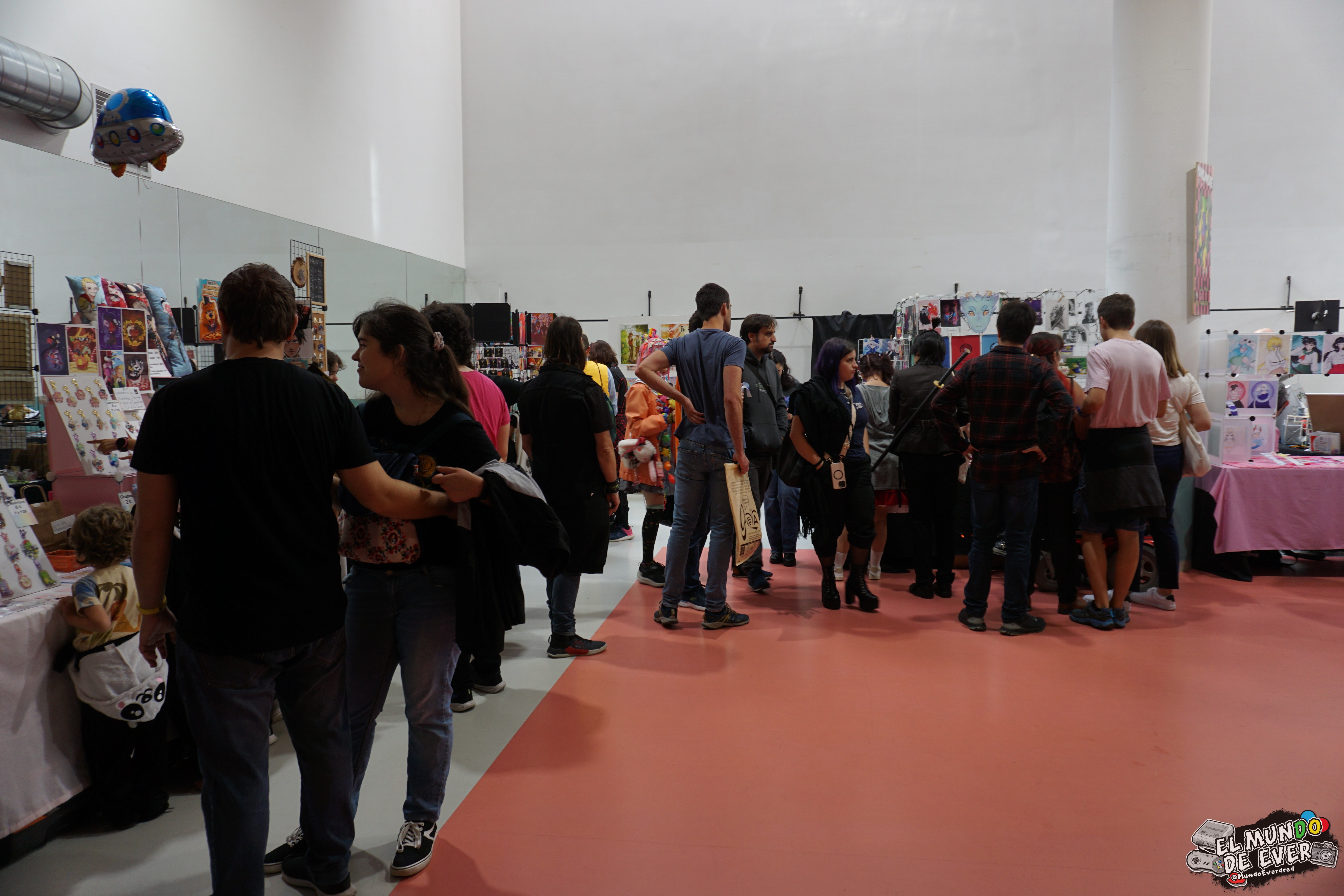 La zona de mayor afluencia, como viene siendo costumbre los últimos años, fue la zona no comercial. Contaba con un total de 38 puestos de artistas, lo cual creo que es un récord histórico (corregidme si me equivoco). Los tuvieron que dividir en 3 zonas distintas. Dos salas y parte de la entrada del Centro Zelaieta. Una locura.
