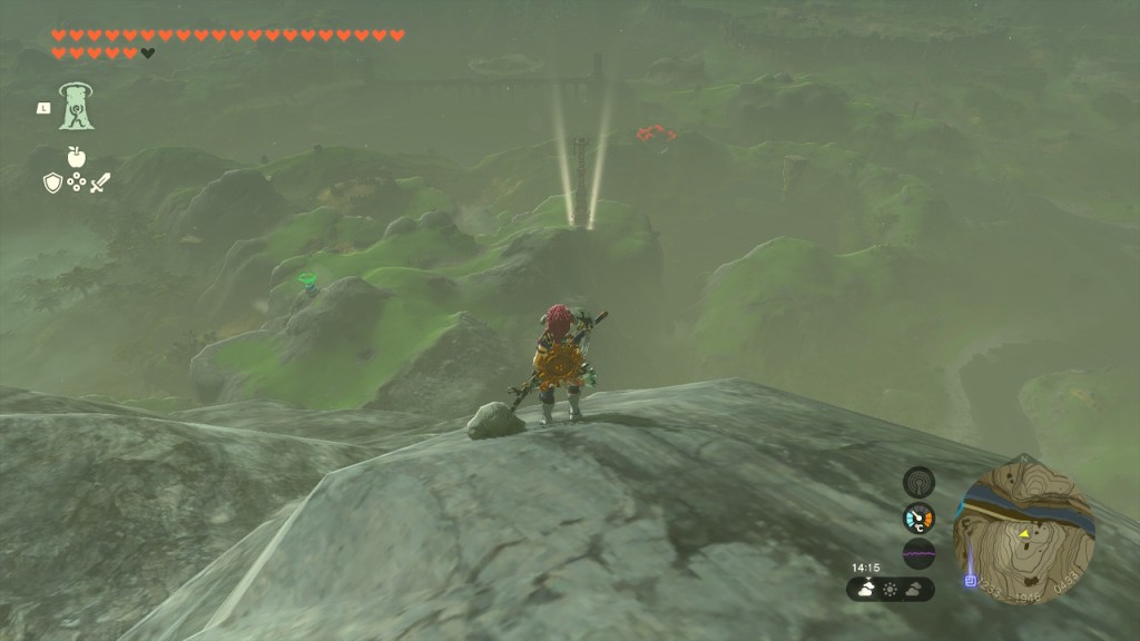 Era el momento de explorar la superficie. Comencé por una sección al norte. Me encontré con Oney y tuve que ayudarla, una vez más, a recuperar sus peluches. Después derroté a un Hinox, a un Petrarock Fortificado y hallé un nuevo pozo que conectaba con el subsuelo. Descendí, activé una raíz y regresé a la superficie.