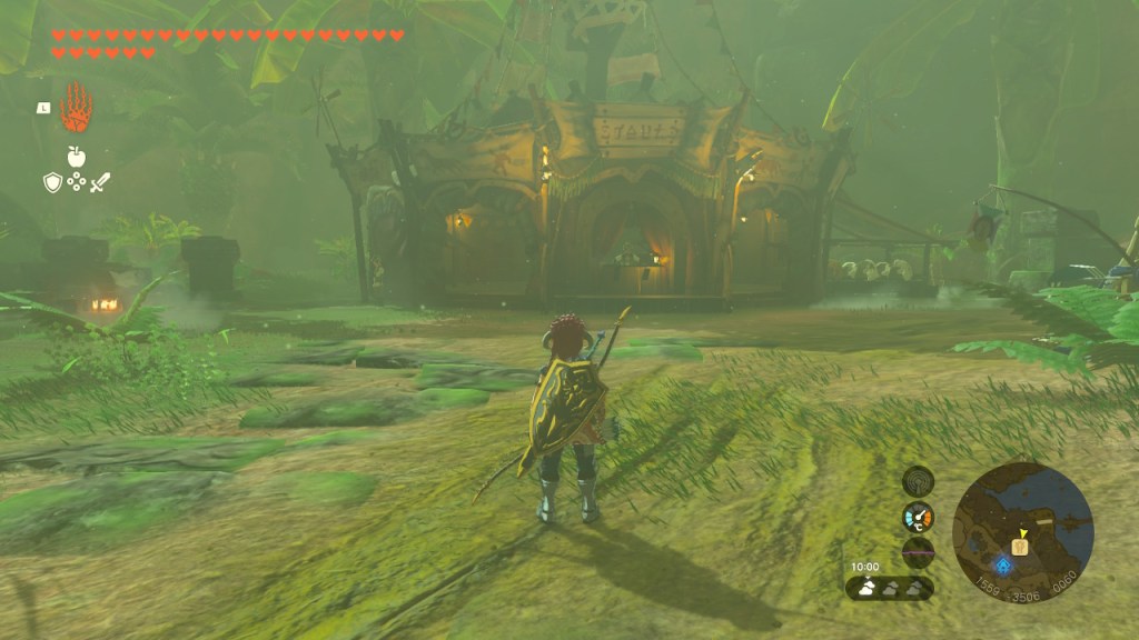 Marche entonces a explorar la selva, la sección sureste de la región. Encontré una cueva cerca de una cascada. Tras descender varios pisos acabé con un Hinox negro. En otra cueva encontré un cuaderno. Este decía que debía arrojar una lanza zonnan alada y que ésta atravesase un anillo brillante. Lo hice y apareció un santuario.