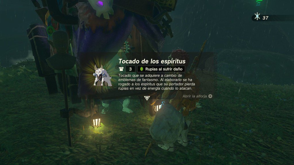 Acabé con todos los enemigos de un asentamiento y rescaté a Hinagan. Me recompensó con un diamante. En una montaña cercana me encontré con Koltin, tenía varios emblemas de Fantasmo para entregarle. Me recompensó con el tocado de los espíritus. No tenía más recompensas para mí, pero aún quedan 64 emblemas en el reino. En cuanto los consiga se los entregaré.