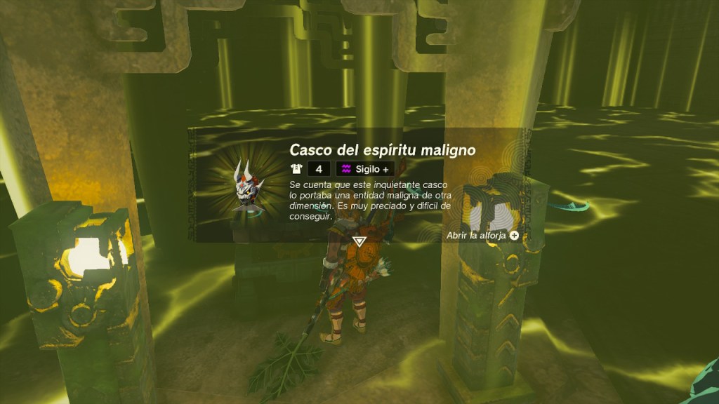 Sólo quedaba por completar el desafío del laberinto. Era realmente confuso, me perdí por sus pasillos llenos de aura maligna. En un golpe de suerte logré encontrar el acceso a la sala central. Ahí completé el santuario y activé el terminal. Ascendí entonces al laberinto de los cielos. Completé el santuario y activé el terminal. Debía buscar los 4 terminales que me marcó en el mapa. Me moví por sus pasillos utilizando las corrientes de aire y empecé a activar terminales. Me costó encontrar alguno de ellos ya que debía buscar una abertura en las paredes para acceder a la sala donde estaba el terminal. Una vez activé los 4 ascendí hasta lo alto del laberinto para activar el definitivo. Éste me mandó dirigirme al subsuelo mediante un camino que acababa de abrirse. Ahí tuve que acabar con un Gólem Cúbico Supremo. Una vez hecho activé el terminal y apareció un cofre con la recompensa. Obtuve el Casco del espíritu maligno.