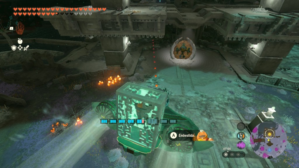 Regresé a las islas y encontré un cofre con una voluntad de los sabios. Construí otra vagoneta improvisada y en cierto momento del trayecto utilicé infiltración para encontrar un nuevo santuario. Poco después terminé llegando a la última de las islas. Esta me propuso un salto de fe. Caí a una enorme isla algo más abajo.