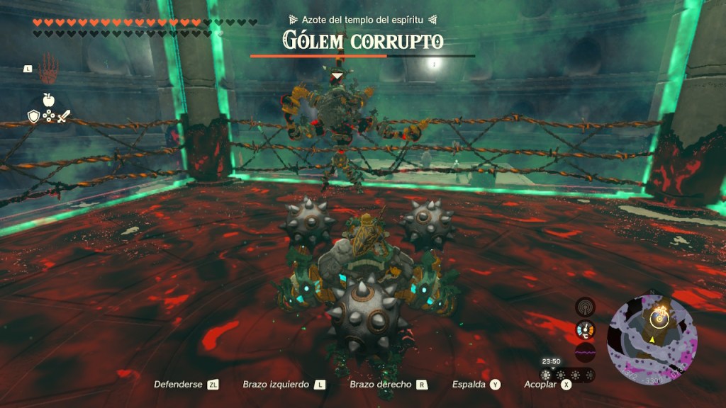 Mineru ya tenía un cuerpo. Entonces me comentó que necesitaba recuperar su piedra secreta para potenciar sus habilidades. Esta se hallaba en el Templo del Espíritu. Me lo marcó en el mapa. Me subí a lomos del gólem de Mineru y nos dirigimos hacia allí. La habilidad que poseía me permitía adherirle artefactos zonnan a distintas partes del cuerpo con los que atacar. Evité combatir ya que era muy lento atacando, así que esquivé a los enemigos y me fui abriendo camino hacia el templo. Tras un viaje no demasiado largo terminé llegando.
