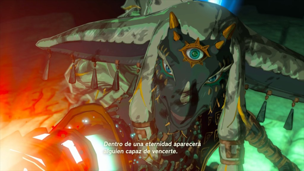 Me habló de la época pasada. Me contó que los zonnan descendieron de los cielos y trajeron las piedras secretas, las cuales potenciaban el poder de sus portadores. Rauru contrajo matrimonio con Sonnia, con quien estableció el reino de Hyrule. Ganondorf acabó con Sonnia y se hizo con su piedra secreta. De este modo se convirtió en el Rey Demonio y arrasó el reino con su ejército de monstruos. Los hylianos estaban contra las cuerdas. Entonces Rauru entregó las piedras secretas a poderosos guerreros, convirtiéndolosasí en sabios, y se enfrentaron al invasor. Pero no tuvieron éxito. Entonces el Rey de Hyrule decidió sellar al Rey Demonio con su magia de destierro sacrificándose también a si mismo. Rauru estaba seguro de que en el futuro aparecería alguien capaz de vencer al Rey Demonio.