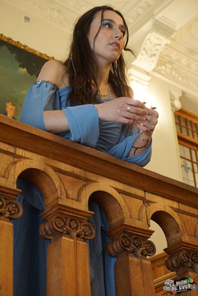 Por si lo que os he contado hasta ahora fuese poco, aun no os he hablado aun de la parte inmersiva del evento. Los actores no se dedicaron únicamente a representar dos o tres escenas o a improvisar algo siendo fieles al personaje. No, ni mucho menos. Los actores pulularon por ahí durante todo el evento, interactuando con el público. De hecho, nada más entrar, nos dieron una misión a todos los asistentes. Debíamos obtener los sellos de cada uno de los personajes, excepto de Elaine, ya que ella regalaba flores (Yo le intenté pedir un sello y ella tan simpática me dijo que no hacía eso).