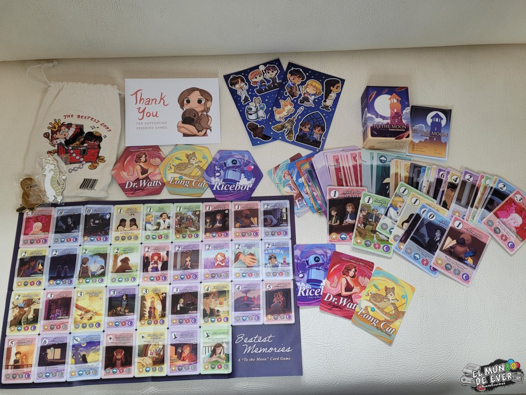 – Recompensas del Kickstarter de To The Moon Bestest Memories: Quien me conozca sabe que To The Moon me marcó. Hace meses jugué al resto de títulos de la saga y la secuela me encantó también. El tercero no tanto. Cuando anunciaron este Kickstarter para un juego de cartas y muchos extras decidí hacerme con todo. Y no ha decepcionado. ¡Qué maravilla!
