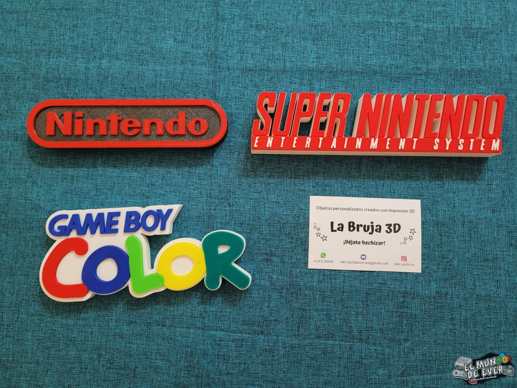 – Logos de Nintendo, Super Nintendo y Game Boy Color en impresion 3D: Este puesto ha sido toda una locura en el evento y no fue para menos. Es algo tan básico y nunca había pensado en ello. Queda genial colocar estos logos hechos con impresión 3D junto con la colección de dicha consola. Caerán muchos más en el futuro, no tengáis ninguna duda.
