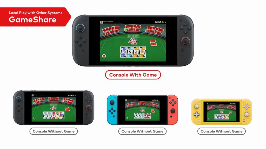 Vuelve el modo descarga DS. Con Nintendo Switch 2 podremos compartir vía comunicacion local cualquier juego compatible con este modo con consolas Nintendo Switch 1 y 2. También se podrá hacer vía online sólo con consolas de la nueva generación de Nintendo. Algo muy interesante que ya ofrece, por ejemplo, Steam en PC. Ahora bien, requiere de conexión a internet muy estable, así que ya veremos qué tal funciona. Pero oye, la posibilidad ahí está.