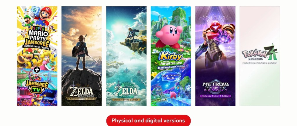Kirby y la Tierra Olvidada + El mundo astral, que contará con una nueva historia, llegará el 28 de agosto. Metroid Prime 4 Beyond contará con importantes mejoras visuales y de rendimiento, pudiendo jugar a 4K y 60 fps o 1080p y 120fps. Además, podrá jugarse con nuevos modo de control como el modo ratón. Leyendas Pokémon Z-A también tendrá una versión mejorada.