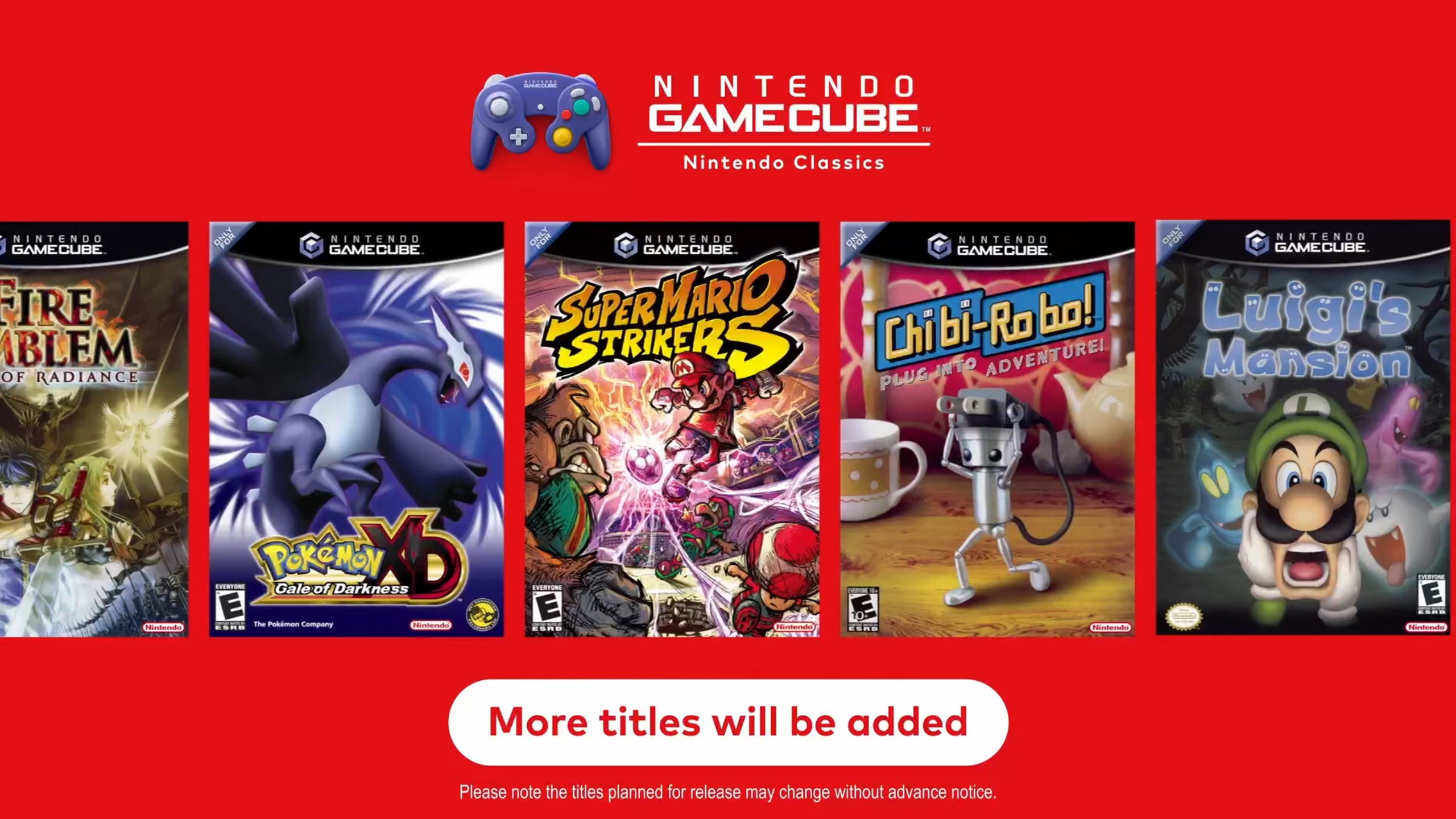 El catálogo de lanzamiento será un tanto escueto. Contará con The Legend of Zelda: The Wind Waker, Soulcalibur II y F-Zero GX. Eso sí, nos han prometido que en el futuro llegarán Fire Emblem Path of Radiance, Super Mario Strikers y Luigi’s Mansion, entre otros.