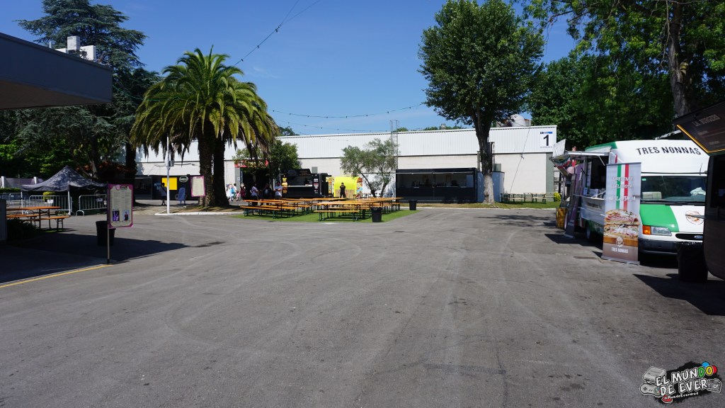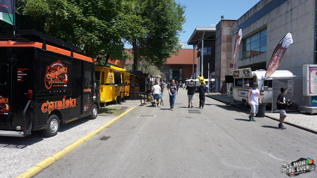 El evento tuvo lugar en el Recinto Ferial Luis Adaro de Gijón. Se trata de un reciento grande y abierto al aire libre, detalle importante para quienes nos agobiamos un poco en tanto pabellón cerrado. La zona al aire libre estaba repleta de food trucks variados. La mayoría con comida como hamburguesas, pizza o perritos calientes. Otros con bebida y algunos pocos con helados o granizados para soportar mejor el calor, que hizo y bastante. También había alguno que vendía cafés, con el calor es verdad que no entra bien, sin embargo, puede ser de gran ayuda para quien quiera aguantar hasta altas horas de la noche y ver los conciertos.