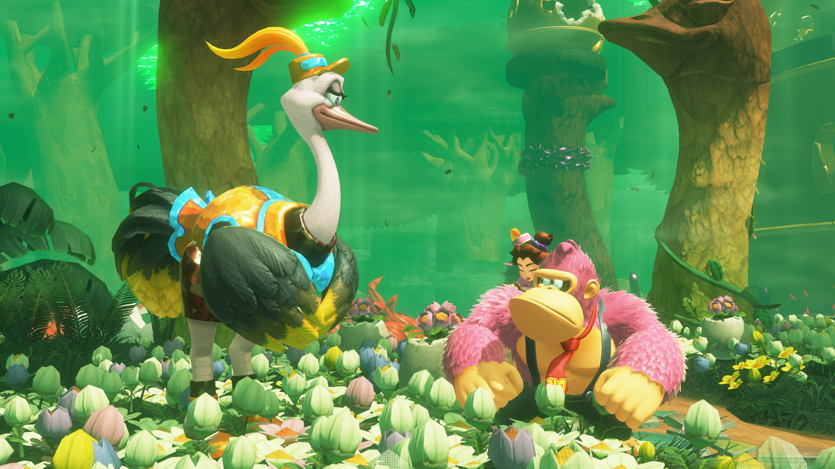 Y no sólo Donkey Kong es así de expresivo. Todos los personajes del juego lo son. Monos, avestruces, cebras o incluso Pauline. Esta última es un personaje realmente importante en esta aventura. Se enfadará, sentirá miedo, alegría, al principio será reticente a cantar y cuanto más avancemos lo hará con mayor soltura. Es cierto que no todos los personajes con los que interactuaremos durante la aventura tendrán forma animal, por tanto no serán tan expresivos.