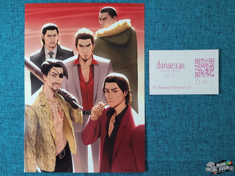 – Lámina A5 de Yakuza: No soy el mayor fan de la saga, ya que, de momento, sólo me he pasado el 0 y el 1. Pero pienso seguir con los siguientes y Kiryu y Goro Majima ya se han ganado un hueco en mi corazoncito como personajes de videojuegos inolvidables.