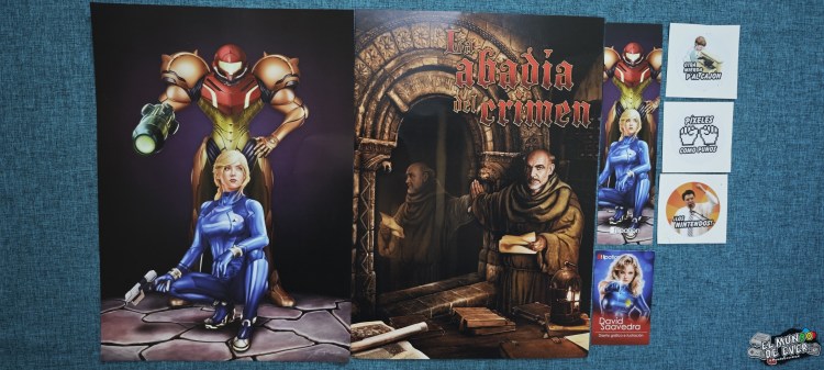 – Láminas de Metroid y La abadía del crimen, marcapáginas de Metroid y pegatinas varias: En cuanto vi estas láminas me las tenía que llevar. El marcapáginas fue un regalo y las pegatinas me hacen demasiada gracia, la de arriba es un sticker que uso mucho en Whatsapp.