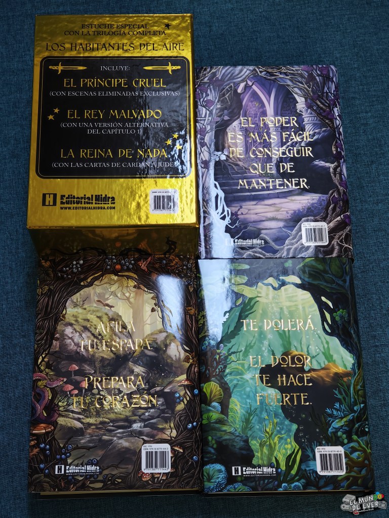 – Cofre edición limitada de la trilogía Los Habitantes del Aire (El Principe Cruel): Quien sea lector asiduo del blog sabe que el pasado año 2025 asistí a una nueva edición de un Baile en la Corte, esta vez con la temática de la saga Los Habitantes del Aire (El Principe Cruel). Sí, me leí los libros antes de asistir, pero no fueron mios. Esperé y esperé a una, más que probable, edición coleccionista en tapa dura. Y, a finales de año, tuve mi recompensa. ¿O debería decir a principios de 2026? La verdad es que esta edición salió en diciembre, pero me la jugaron con la reserva y, tras darles un poco de margen, opté por cancelarla y comprarlo en tienda, suerte que aun quedaban. Sobre la edición poco que decir, es preciosa, llena de detalles, con unos cantos y sobrecubiertas de auténtica locura. Bellísimo.
