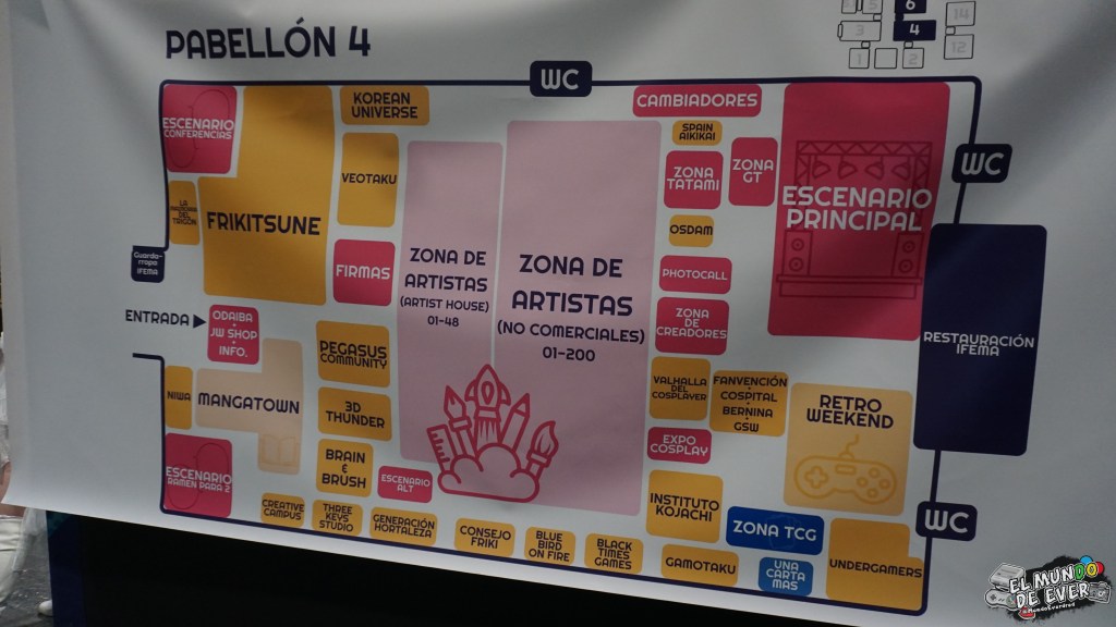 El Pabellón 4 incluyó la mitad del Artist House y la mayoría de la zona No Comercial. Contó con el escenario principal donde tuvieron lugar los concursos más importantes del fin de semana, además de escenarios de menor tamaño para otro tipo de conferencias. Tuvo también la zona de Retroweekend, una amplia zona para Frikitsune, otra para Mangatown y zonas pequeñas para diversas actividades, academias o exhibiciones. El Pabellón 6, por su parte, contaba con la otra mitad del Artist House y con algo más de un tercio de la Zona No Comercial. También contaba con la Zona Comercial, la Zona +18, además de otros escenarios, actividades y asociaciones.